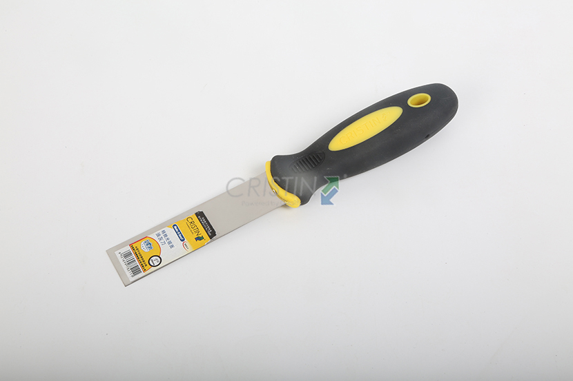 20道工藝拋光不銹鋼刀片;造型合理--刀片從手柄至刀尖厚度遞減,保證產(chǎn)品承受壓力不會折斷的同時具有良好的柔韌性;尖端鋒利,有利于鏟除舊墻體、批刮膩?zhàn)?;軟觸式手柄,更舒適。